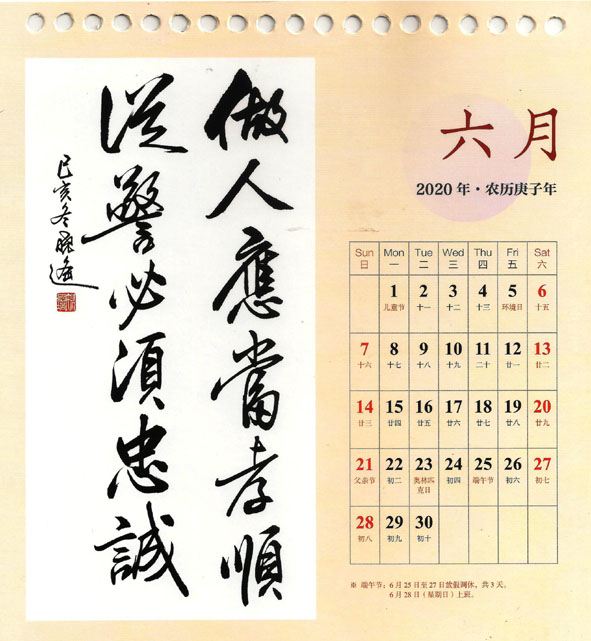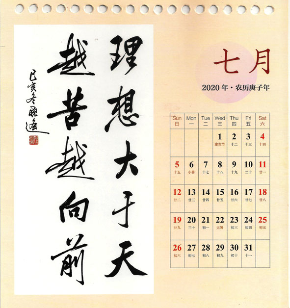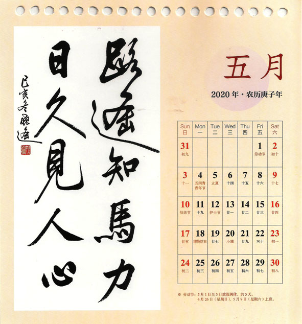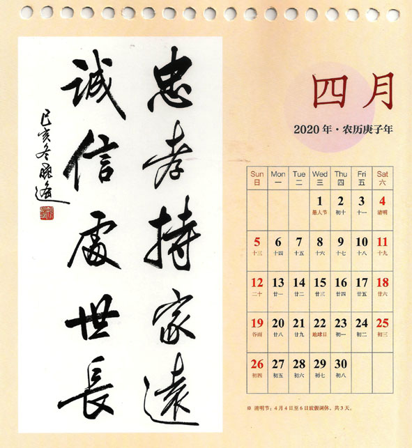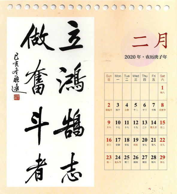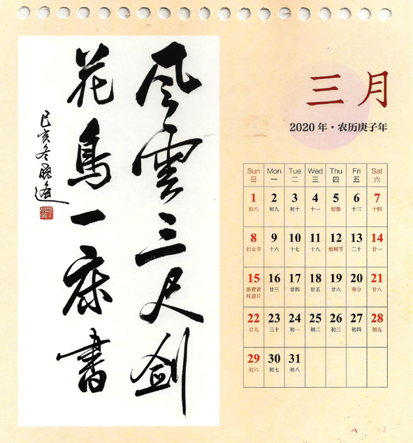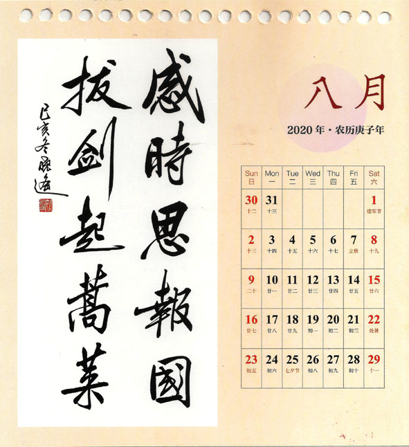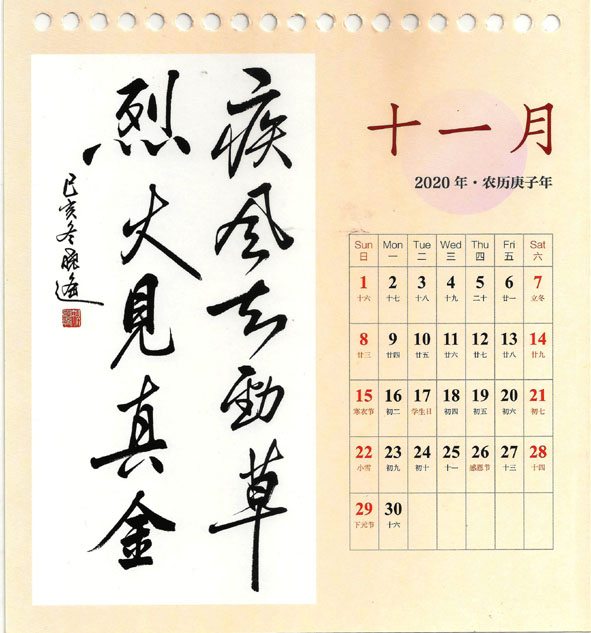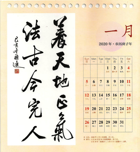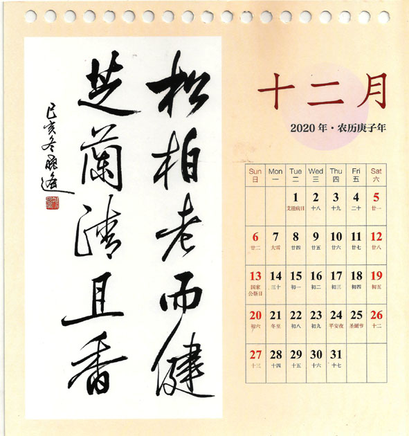 年末歲初,筆者收到了姚國(guó)培新出的2020年賀歲掛歷。這是一本設(shè)計(jì)新穎、制作精美、內(nèi)容高雅、作品風(fēng)格獨(dú)樹(shù)一幟的書(shū)法掛歷,用銅版紙印刷,每一幅作品都由姚國(guó)培自己創(chuàng)作、設(shè)計(jì)。