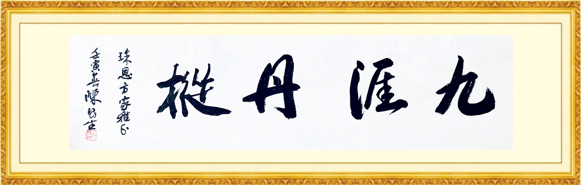 “厚德載物” “道法自然”“壯志凌云”“ 九崖丹樅” “九鶴巖茶”是陳則生新近創作的5幅書法作品。