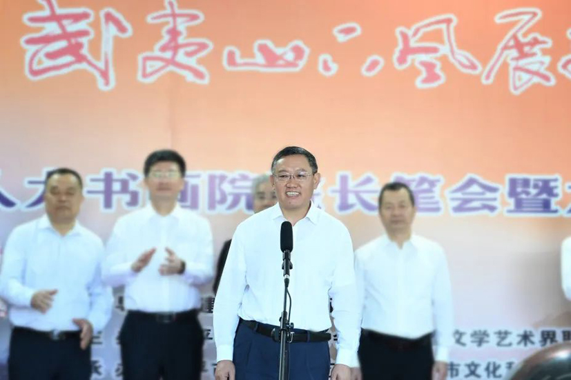 王來(lái)文在致辭中表示,福建省文聯(lián)和南平市人大常委會(huì)共同主辦的本次活動(dòng),是繼去年書畫筆會(huì)后我省書畫界的又一藝術(shù)盛會(huì),是傳承弘揚(yáng)中華優(yōu)秀傳統(tǒng)文化的一次生動(dòng)實(shí)踐,是全省文藝界“聽黨話、頌黨恩、跟黨走”向黨的二十大獻(xiàn)禮的一首文藝贊歌。旨在通過(guò)藝術(shù)活動(dòng)的形式,深入學(xué)習(xí)貫徹黨的二十大精神,用深情的筆墨貫徹永遠(yuǎn)跟黨走、邁向新征程的情懷,以文藝激活中華優(yōu)秀傳統(tǒng)文化的生命力,以文藝密切各設(shè)區(qū)市及平潭綜合實(shí)驗(yàn)區(qū)之間的聯(lián)系,夯實(shí)全省各地市攜手合作、齊肩并進(jìn)、共贏共享的發(fā)展基礎(chǔ),推進(jìn)全面建成社會(huì)主義現(xiàn)代化強(qiáng)國(guó)、實(shí)現(xiàn)第二個(gè)百年奮斗目標(biāo),以中國(guó)式現(xiàn)代化全面推進(jìn)中華民族偉大復(fù)興。