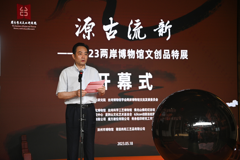 5月18日,由閩臺歷史文化研究和臺灣博物館學會兩岸博物館交流發展委員會共同主辦,兩岸10余家單位共同協辦的“源古流新——2023兩岸博物館文創品特展”在福州市三坊七巷塔巷30號閩臺歷史文化研究院開幕。期間,還舉辦了閩臺歷史文化研究院數字展館發布會和兩岸講壇2023年第2期“臺灣博物館的發展現狀及兩岸博物館文創產品設計開發與社會思考”學術交流活動。省委臺港澳辦副主任陳志勇、省政府發展研究中心副主任廖榮天、閩臺歷史文化研究院院長陳秋平,以及臺灣博物館學會副理事長、兩岸博物館交流發展委員會主任委員陳國寧等臺灣文博界專家、兩岸參展方代表、兩岸高校師生共60余人參加上述活動。