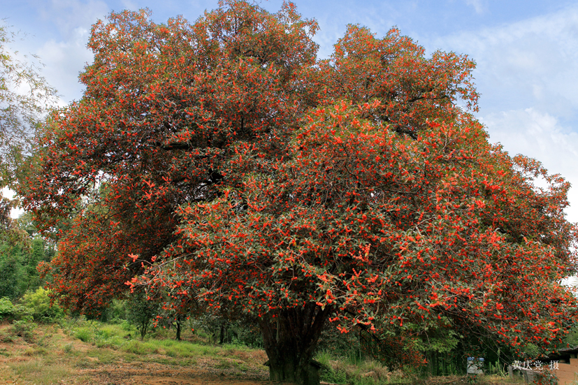 “小臨江,大丹桂”,我的一句口頭禪,臨江鎮(zhèn)實際上是浦城縣的大鄉(xiāng)鎮(zhèn),是南浦城核心區(qū)、交通要沖,說臨江小主要是講管轄的范圍小,我是個徒步狂人,近幾年臨江鎮(zhèn)的農(nóng)業(yè)基礎(chǔ)設(shè)施建設(shè)神速,鄉(xiāng)間的田間地頭,修筑了許多標準水泥機耕道,我在機耕道上徒步急走,一不小心就走進了外鄉(xiāng)地界。說大丹桂是這里丹桂種植面積大,全鎮(zhèn)100多平方千米,房前屋后、田間地頭,凡是能種樹的地方都種上了丹桂,可謂是寸土寸“丹”,這里的丹桂樹特大,號稱中華第一桂的“九龍桂”就生長在臨江鎮(zhèn)楊柳尖村,丹桂樹是棵狀植物,主干長出地面一米以上分支,九龍桂,是一株樅狀桂花樹,她有九根主干,形式九條龍,號稱“九龍桂”樹高15.6米,冠幅18米,胸圍4.6米,覆蓋范圍230平方米,樹齡超過1100年,年產(chǎn)鮮花240公斤,是目前發(fā)現(xiàn)的全國最大的桂花樹,并以“唐桂”收錄《中國桂花集成》。這里的桂花產(chǎn)業(yè)大,臨江鎮(zhèn)桂花產(chǎn)業(yè)從園林綠化開始起步,臨江鎮(zhèn)的桂花樹株株都高大挺拔,皆為園林綠化首選,“好大一棵樹”,人們首先想到的當然是“九龍桂”,她的名氣實在太大了,臨江鎮(zhèn)村民房前屋后的每一棵桂花樹都稱得上“好大一棵樹”,都是臨江鎮(zhèn)做大桂花產(chǎn)業(yè)的好幫手,丹桂從綠化起步,往食品拓展,目前已經(jīng)研發(fā)出高端桂花酒、桂花糕、桂花蜜,還有桂花茶,閩北的兩棵樹在臨江鎮(zhèn)終于強強聯(lián)手,臨江鎮(zhèn)茶人胡春友先生已經(jīng)研發(fā)出了桂花紅茶、桂花綠茶,在桂花干花的保香、保色、保質(zhì)上也頗有建樹。