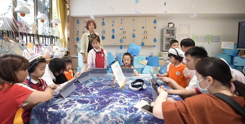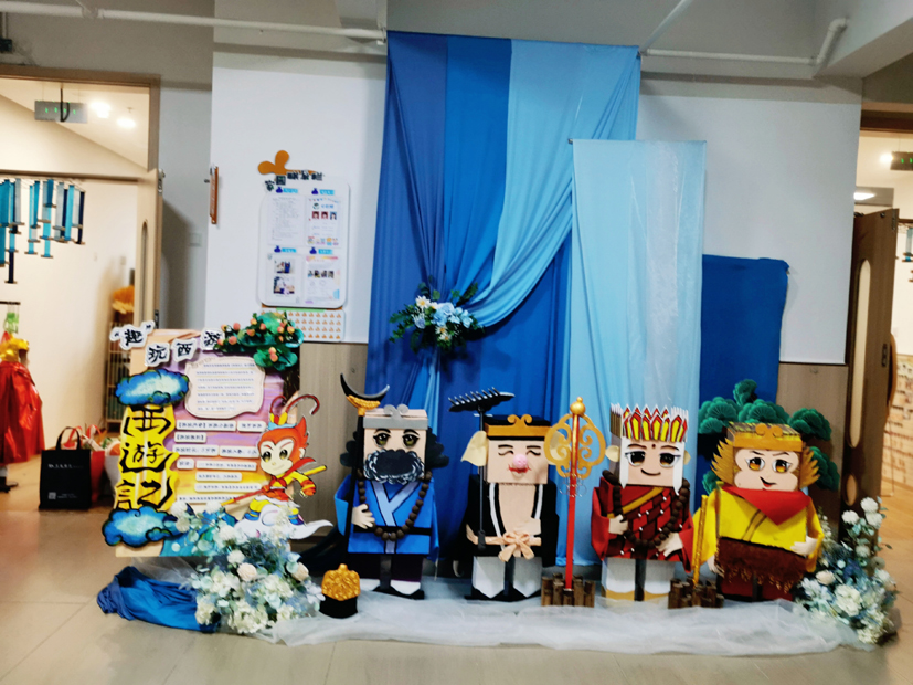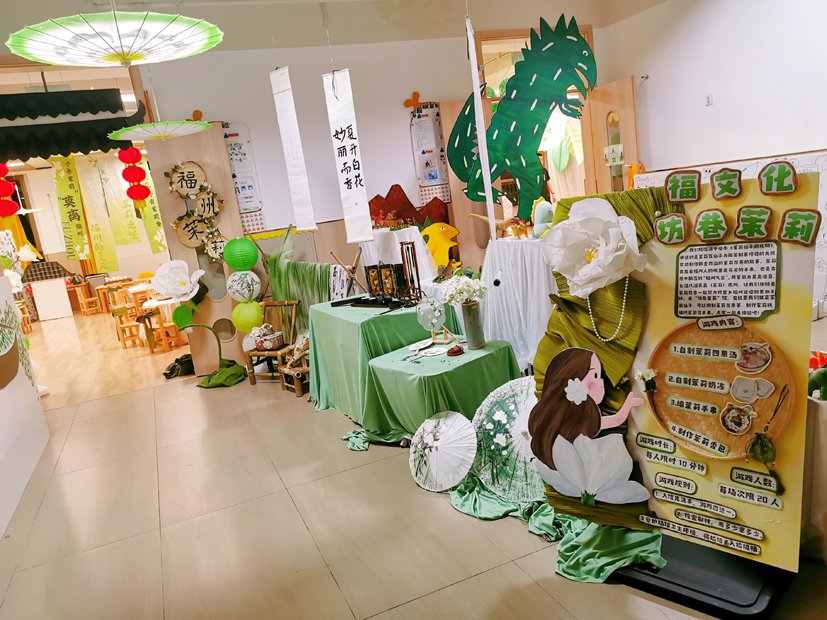 幼兒園為孩子們打造了12個各具特色的“故事游園館”,引導(dǎo)孩子們在《小蝌蚪找媽媽》《西游記》等經(jīng)典童話故事中感受真、善、美;在閩都故事、福文化故事中了解福州的民俗文化,萌發(fā)愛家鄉(xiāng)的情感;在《雞毛信》等紅色故事中感受英雄的力量……