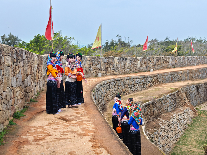 惠安女作為福建三大漁女之一,是福建泉州惠安縣等海邊的一群特殊的民間風情女人,以勤勞智慧、敢拼敢干而聞名。惠安女服飾可以用流傳于民間的一句順口溜來概括:“封建頭,民主肚,節(jié)約衣,浪費褲。”惠安女的頭部總是嚴嚴實實裹著頭巾,卻大方地露出肚臍,上衣短小,褲管寬大,所以稱節(jié)約衣和浪費褲。惠安女服飾有著幾百年歷史、入選首批國家級非物質(zhì)文化遺產(chǎn)名錄,她們頭戴花色頭巾,身著短上衣、寬筒褲,銀腰帶束出婀娜身姿,五彩斑斕的裝扮與海天相映成趣,不僅是閩南傳統(tǒng)女性的代表,更承載著深厚的地域文化底蘊。在閩南的碧海藍天下,惠安女宛如靈動的文化符號,以其獨特的服飾與堅韌的精神,在歲月長河中熠熠生輝。此次專程奔赴惠安縣崇武鎮(zhèn),我懷揣著對這份獨特風情的向往與敬意,希望用鏡頭定格惠安女最真實、最鮮活的模樣。拍攝過程中,我穿梭于漁村街巷,聚焦她們織網(wǎng)、勞作、休憩等生活場景,精心選取 12 幅作品,試圖從不同角度展現(xiàn)她們風情萬種的精神面貌,讓更多人了解惠安女,了解惠安女服飾的文化,同時了解服飾背后堅毅勇敢的“惠女精神”。