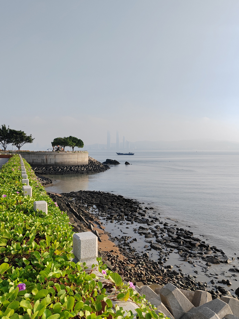 暮春時節,只見九龍江的水汽蒸騰,披在龍海城區上空,紫云公園在薄霧中時隱時現,遠處的臺灣海峽,更是一片白茫茫。