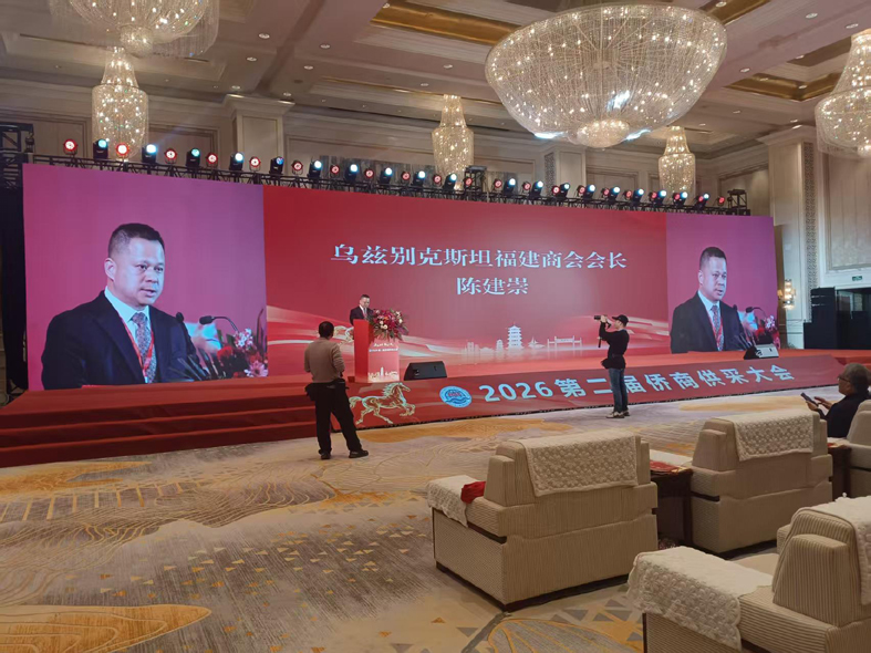 2026年2月28日,第二屆僑商供采大會在福州中庚喜來登酒店成功舉辦。商務部駐福州副特派員陳霖,福建省人民政府顧問武評,福建省工商聯副主席林龍金,福建省僑聯副主席翁小杰,福建省工商聯黨組成員、秘書長施文彪,商務部駐福州特辦處長胡國愛等領導參加本次大會;省商務廳、福州海關到會進行政策解讀。林向榮、施洪清、陳建崇、高建、梁峰、王祖濤等世界僑商僑領發言,分析所在國營商環境及貿易與投資環境。中富通集團、福建省宏盛幸福石墨烯科技集團、奮安集團、福州大世界橄欖、良辰美文化傳媒、福建閩高電力股份有限公司、倉山閩江海外發展服務中心等國內企業上臺推介;香港倍佳集團分享企業出海經驗。來自國內外企業800余人參加本次大會。