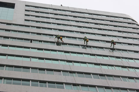 原來,都市中的高樓大廈外墻由于常年受到日曬和風吹雨打,以及大氣中有害的氣體和油煙等污染和化學反應的侵蝕,使得建筑物外墻產生了污垢和風化,既影響了建筑物的標致和市容,又損壞了建筑物。為了城市的整體美觀,在現代都市中滋生出一種新興的行業——高樓外墻清洗。這些“空中飛人”則是利用高空操作繩、安全繩、高空坐板(或吊板、吊籃等)針對大樓外墻材料進行自上而下刷洗清潔制劑、清洗污垢灰塵的高空工作者,從事這種行業的人員必須經過專業培訓并頒發外墻清洗資格證才能上崗。